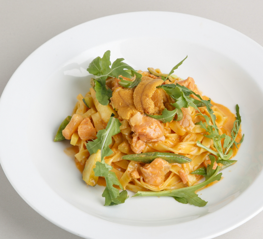 ■【13階】「セストセンソ」北海道二海サーモンとズッキーニ、モロッコインゲンのウニクリームソース 2,480円