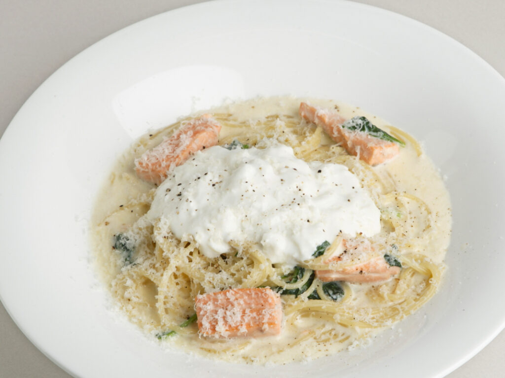 ■【13階】「北海道イタリアン ミアボッカ」北海道二海サーモンとフレッシュモッツァレラチーズのクリームソース 1,880円