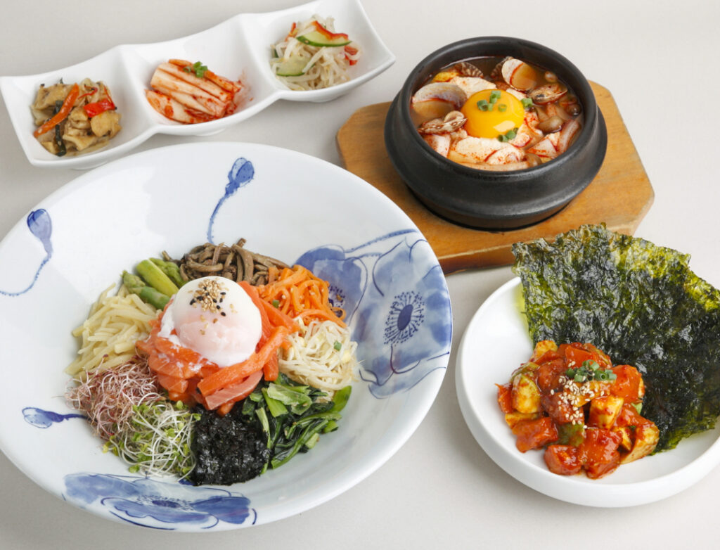 ■【13階】「水刺齋(スランジェ)」北海道二海サーモンのユッケ風スランジェビビンパ ~アボカドと北海道二海サーモンの酢コチュジャン和え 2,508円
