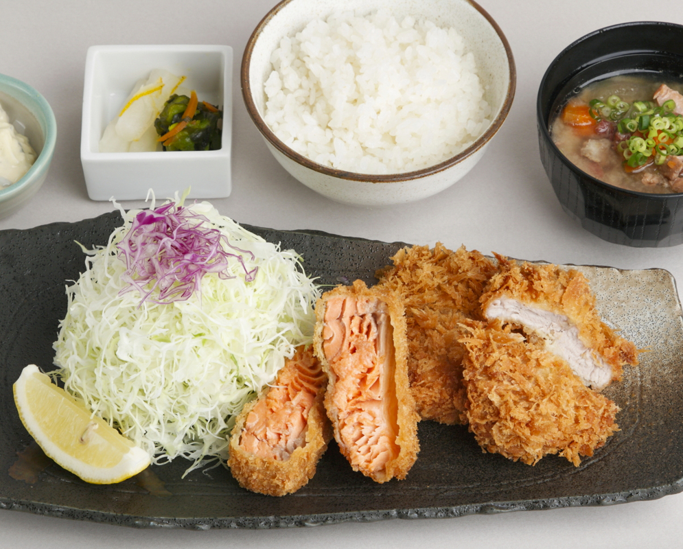 ■【13階】「とんかつ とん匠」北海道二海サーモンと鹿児島県産南州豚ひれかつ盛り合わせ定食 2,480円
