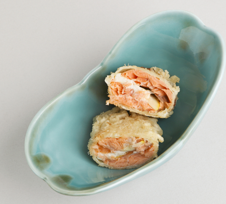 ■【13階】「新宿つな八」北海道二海サーモンとクリームチーズの挟み揚げ 880円