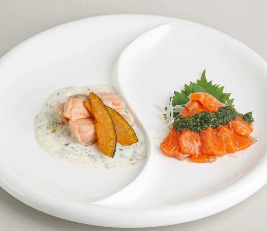 ■【14階】「天厨菜館」北海道二海サーモン二味 ~葱と山椒のソース、トリュフのクリームソース~ 2,000円