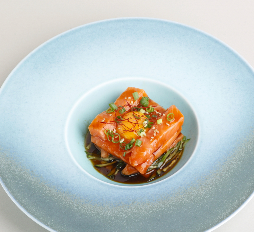 ■【14階】「焼肉 トラジ」北海道二海サーモンの月見和え 1,500円
