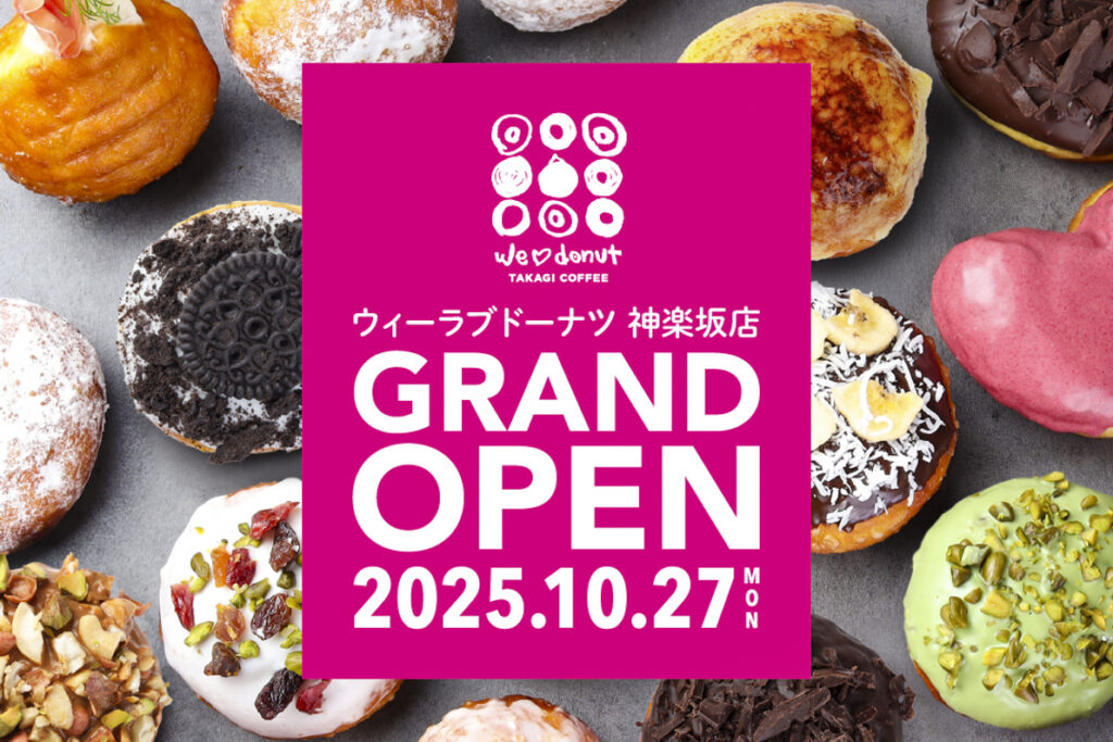 新宿区神楽坂に国内4店舗目となる生ドーナツ専門店『we♡donut(ウィーラブドーナツ)』が2025年10月27日(月)ニューオープン。詳細をご紹介します。