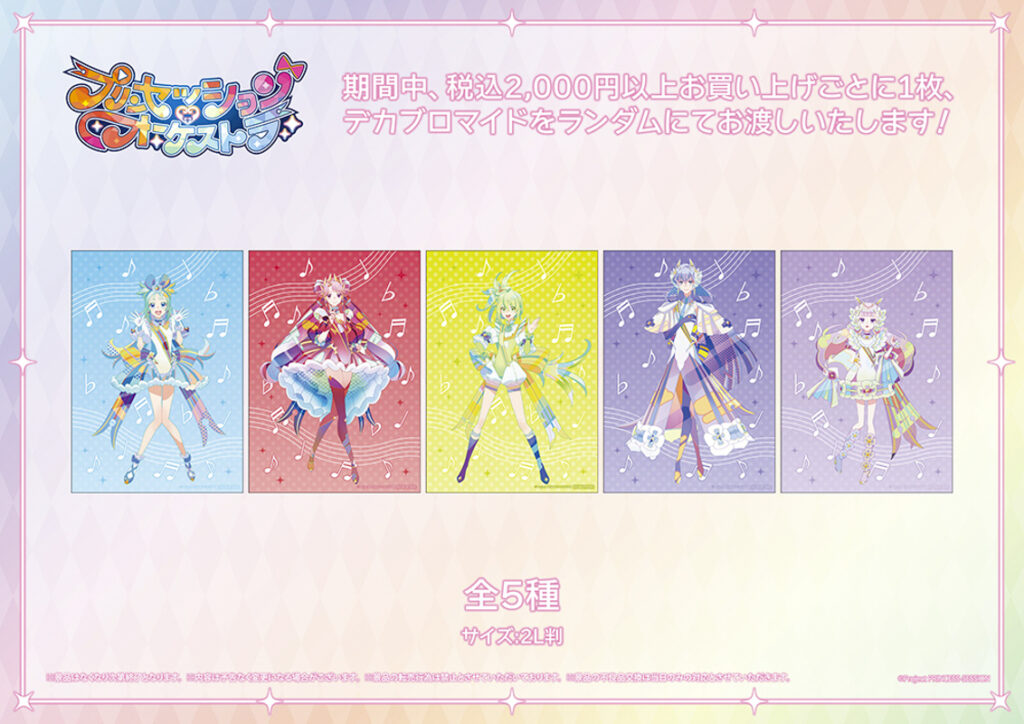 関連商品を税込2,000円以上の購入毎に、デカブロマイド(全5種)がランダムでもらえる購入特典も用意されます。