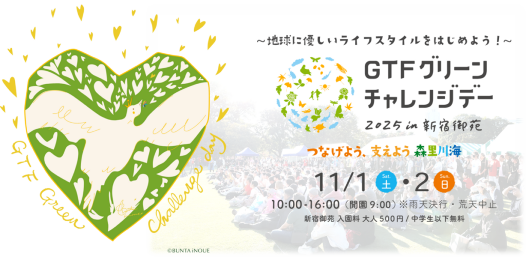 新宿御苑内では、“地球にやさしい未来をつくる”屋外環境の秋フェス『GTFグリーンチャレンジデー2025』が2025年11月1日(土)・2日(日)に開催。詳細をご紹介します。