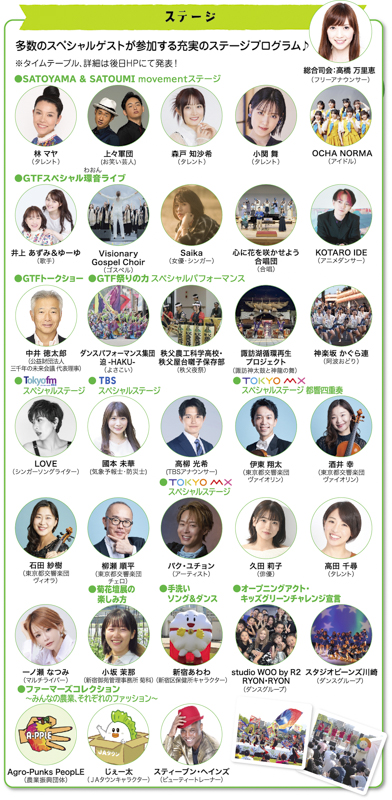 【11月2日 出演者】スタジオビーンズ川崎(ダンスグループ)、林マヤ(タレント)、鈴木啓太(お笑い芸人)、OCHA NORMA(アイドル)、小坂茉那(新宿御苑管理事務所 菊科)、Saika(女優・シンガー)、Agro-Punks PeopLE(農業振興団体)、じぇー太(JAタウンキャラクター)、スティーブン・ヘインズ(ビューティートレーナー)、石田 紗樹(東京都交響楽団 ヴィオラ)、伊東 翔太(東京都交響楽団 ヴァイオリン)、酒井幸(東京都交響楽団 ヴァイオリン)、柳瀬順平(東京都交響楽団 チェロ)、Visionary Gospel Choir(ゴスペル)、太田喜久(GREEN×EXPO協会(公益社団法人2027年国際園芸博覧会協会)機運醸成部長)、神楽坂 かぐら連(阿波おどり)、國本未華(気象予報士・防災士)、高柳光希(TBSアナウンサー)