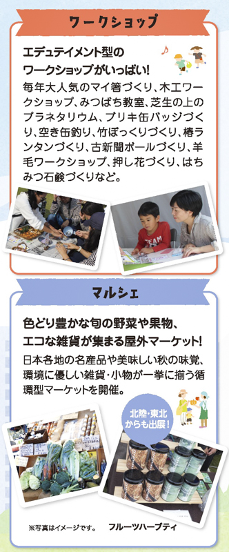 音楽・食・マルシェ・ワークショップ・祭りなど、多彩なプログラムを通じて“地球にやさしい未来をつくる”週末をお届けします。