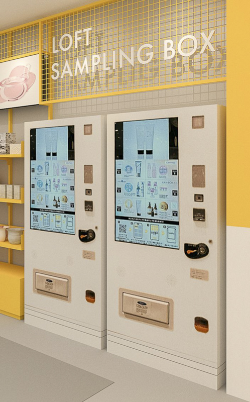 ロフトアプリ会員向けに新商品の試供品を提供するサンプリング専用自動販売機です。