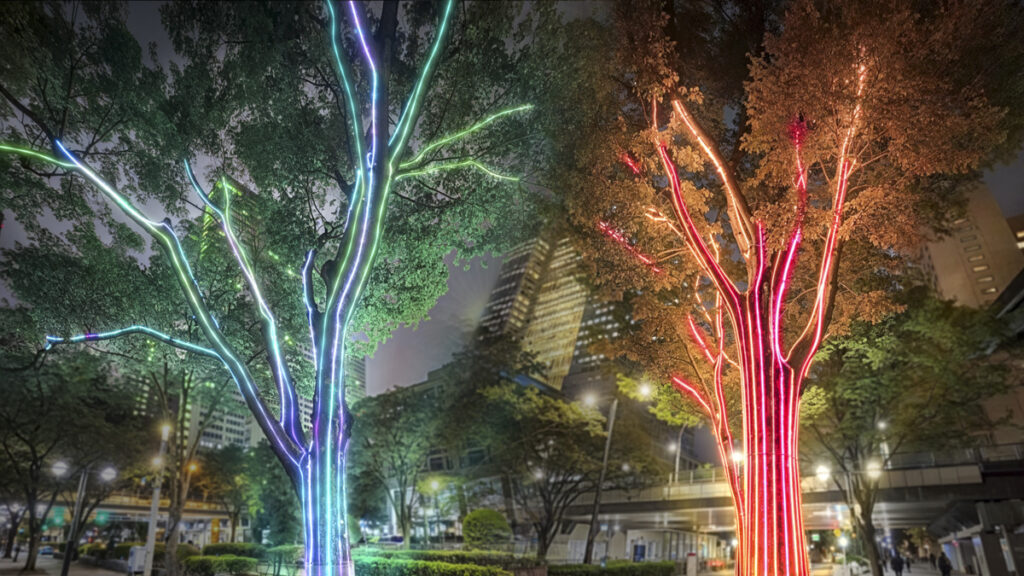 『Shinjuku Neon Walk』では、中央通りに設けた4つのゾーンで、アーティスト真鍋大度らによる AIを活用した作品などのさまざまな光のアートが楽しめます。