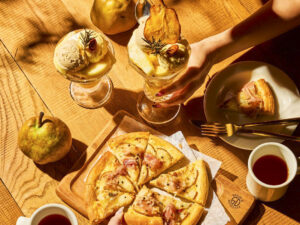 ■「ラ・フランスと生ハムのゴルゴンゾーラピザ ランチ」1,650円(税込) / ドリンク付 1,875円(税込) / ミニデザート付 1,980円(税込)