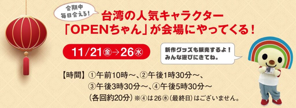 ■台湾の人気キャラクター「OPEN(オープン)ちゃん」がやってくる!