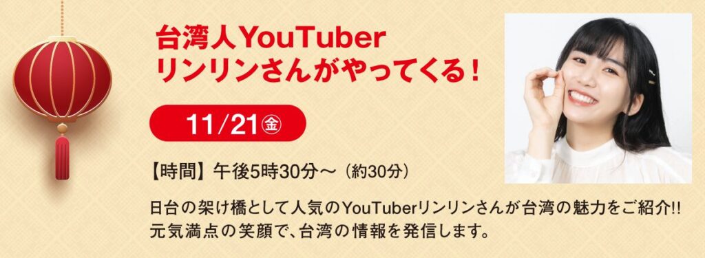 ■台湾人の人気Youtuber「リンリンさん」がやってくる!