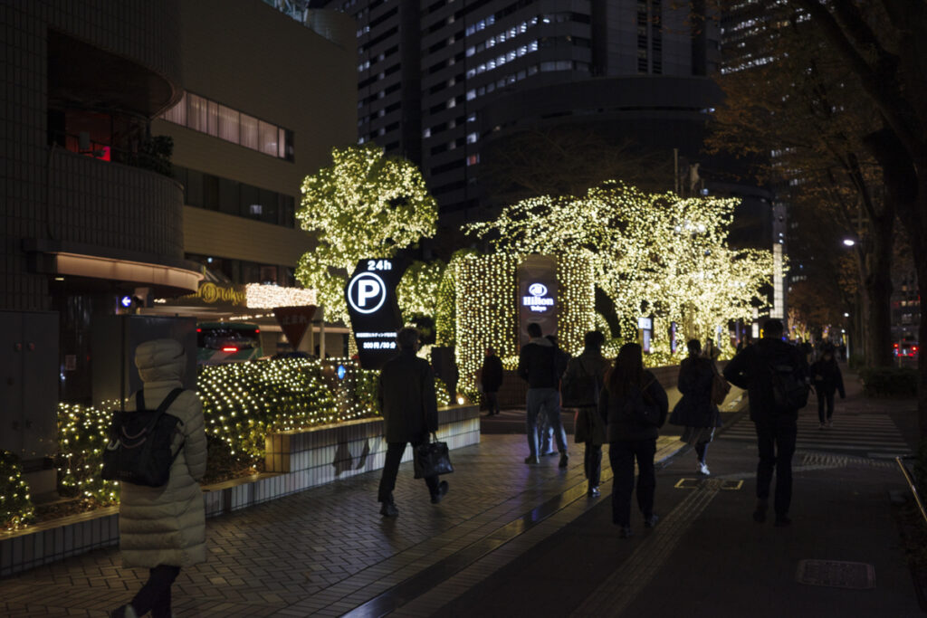 新宿西口や西新宿周辺は、ホテルやビルなどの施設が立ち並んでおり、一階のフロアにクリスマスツリーやイルミネーションを飾っている場所が多く点在しています。