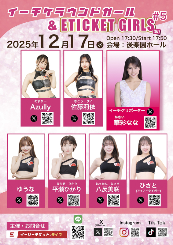 有限会社遊企画21(本社:東京都清瀬市、イーチケRG代表:Asami)が運営するイーチケラウンドガール(以下、イーチケRG)の姉妹グループ、ETICKET GIRLS(仮)(以下:イーチケRG姉妹グループ)が2025年12月17 (水)に後楽園ホールで開催されたT&Tボクシングジム『(株)enect presents FIGHT for PRIDE vol.5』において、客席に横断幕をディスプレイし、大きな反響を呼びました。