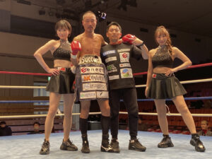 選手だけでなく、ラウンドガールも横断幕や等身大バナー、登り等で存在感を示すことで、ラウンドガール達で率先して会場を華やかにすることが会場全体の盛り上がりに直接的に貢献できるはず…とイーチケRG代表のAsamiは言っていました。