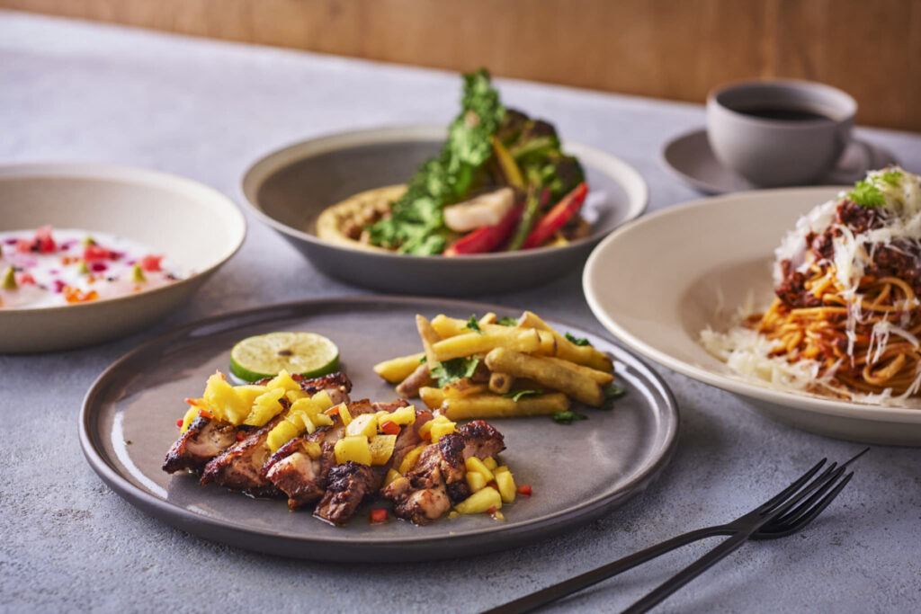J.S. バーガーや薪火で丁寧に焼き上げるグリル料理、旬の食材を活かしたメニューなどが提供されます。