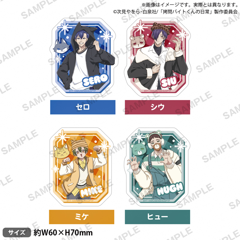 ■TVアニメ「拷問バイトくんの日常」ジオラマアクリルスタンド アニマルコーデ ミニキャラver. 各1,100円(税込)