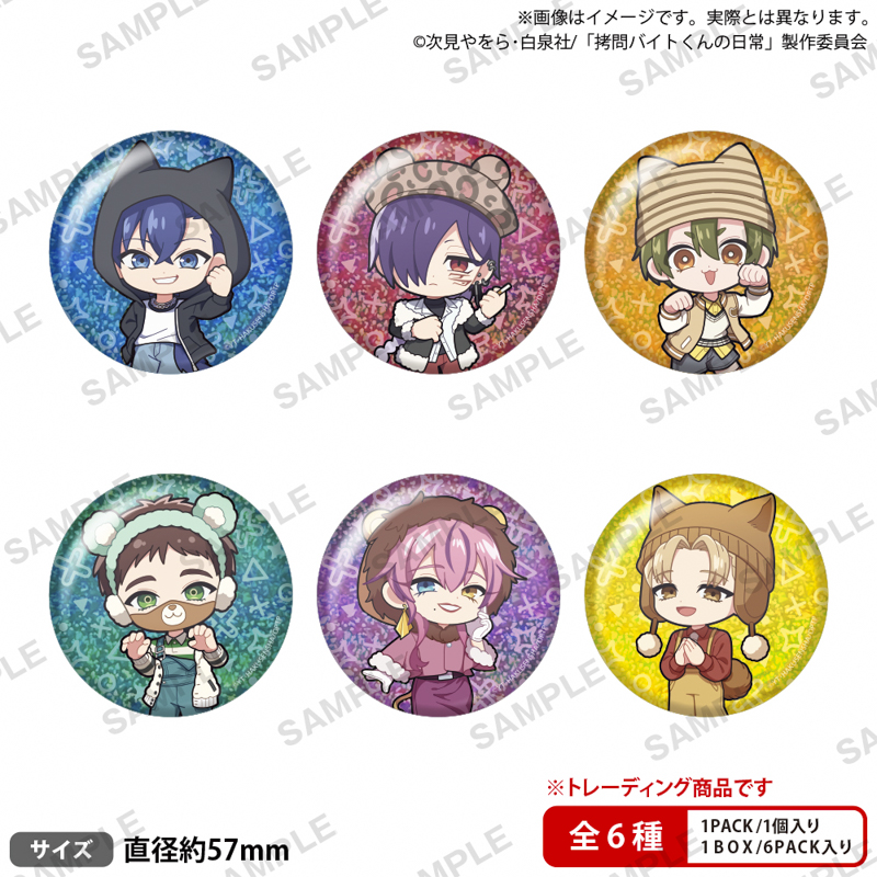 ■TVアニメ「拷問バイトくんの日常」トレーディングホログラム缶バッジ アニマルコーデ ミニキャラver. 550円(税込)