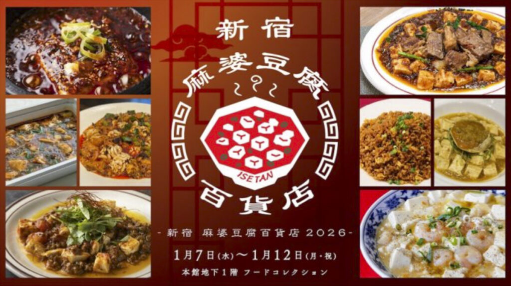 「伊勢丹新宿店」本館地下1階 フードコレクションでは、個性豊かな麻婆豆腐が集結する『新宿麻婆豆腐百貨店 2026』が2026年1月7日(水)より初開催。詳細をご紹介します。