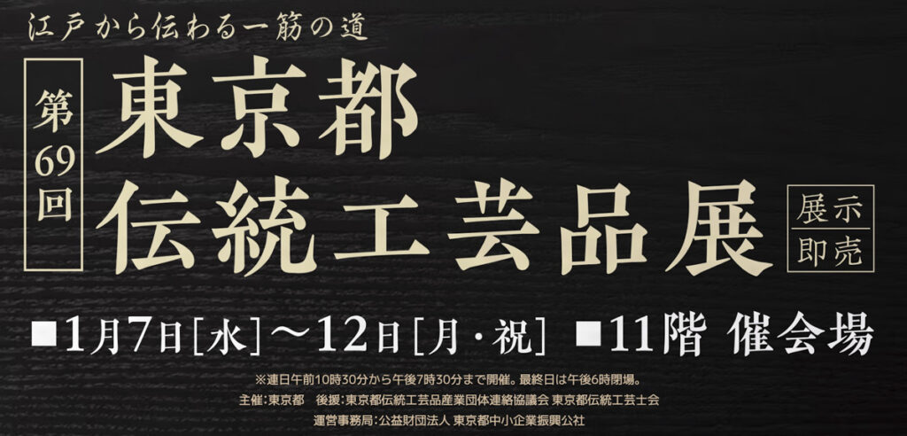 「新宿高島屋」11階催会場では、『江戸から伝わる一筋の道 第69回東京都伝統工芸品展』が2026年1月7日(水)より開催。詳細をご紹介します。