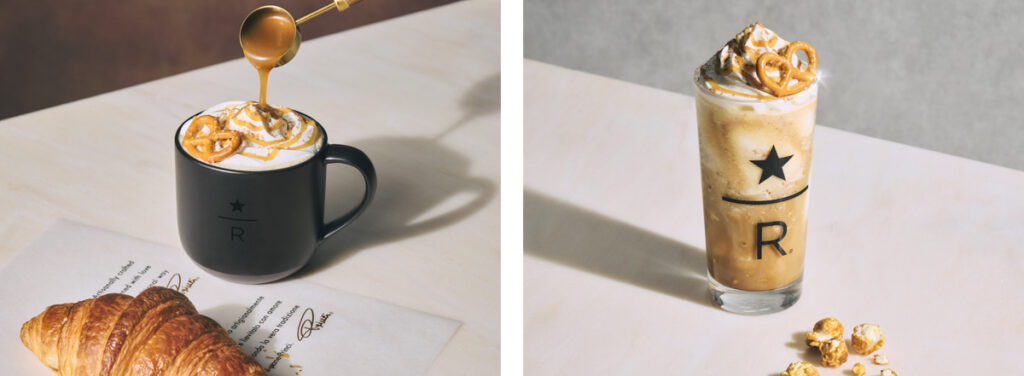 「スターバックス リザーブ® カフェ」にて提供開始される『キャラメル メルツ ラテ』と『キャラメル メルツ フラペチーノ®』は、冬に楽しみたいスターバックス リザーブ®のエスプレッソを使った2つのビバレッジ。