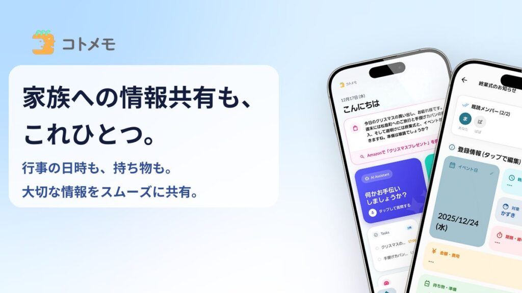『コトメモ』は、プリントを探す時間を減らし、家族間の情報共有をスムーズにし、子育ての日常を少し楽にしてくれるAIアプリです。