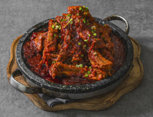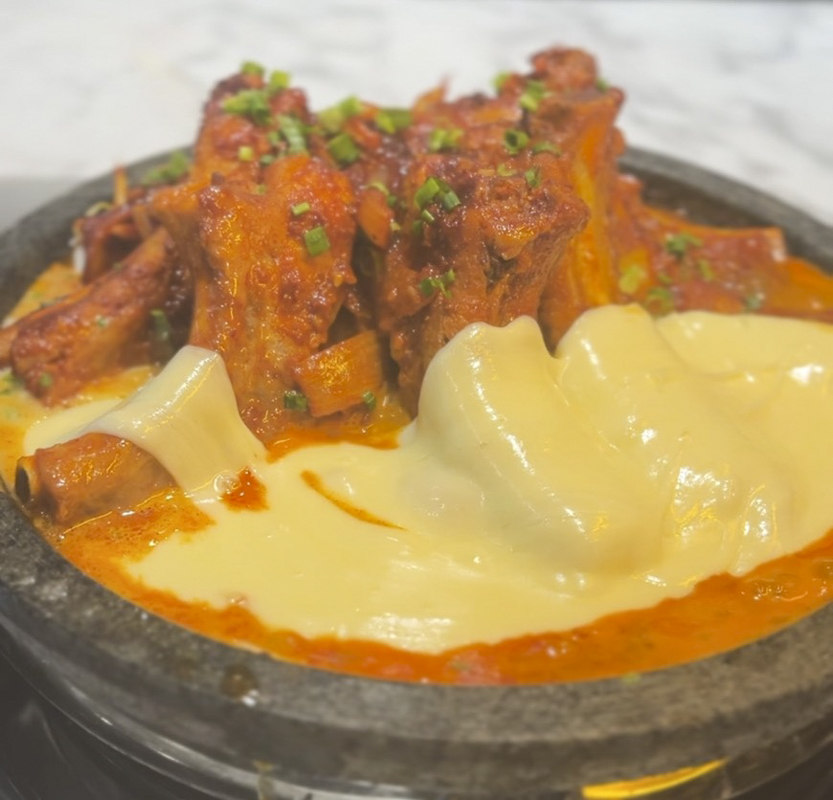 骨から外れるほど柔らかくなったバックリブに、秘伝の「濃厚旨辛ソース」を絡め、熱々の石焼プレートで提供する骨付き肉の旨味とジューシーさが特徴の韓国肉料理です。