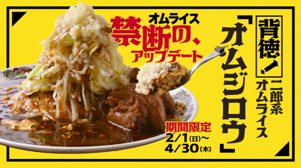 2026年2月1日(日)からは二郎系オムライス『オムジロウ』が登場。