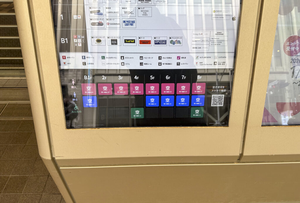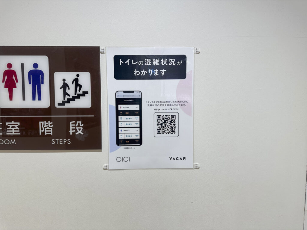 また、新宿マルイ本館ではトイレ状況が一目でわかる案内が外に設置されており、QRコードを読み込むことで混雑状況もわかるようになっています。