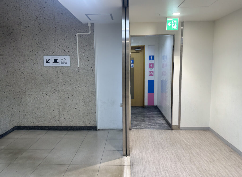 階段の踊り場に設置されているため、混雑している時には別の階のトイレへ移動しやすいです。