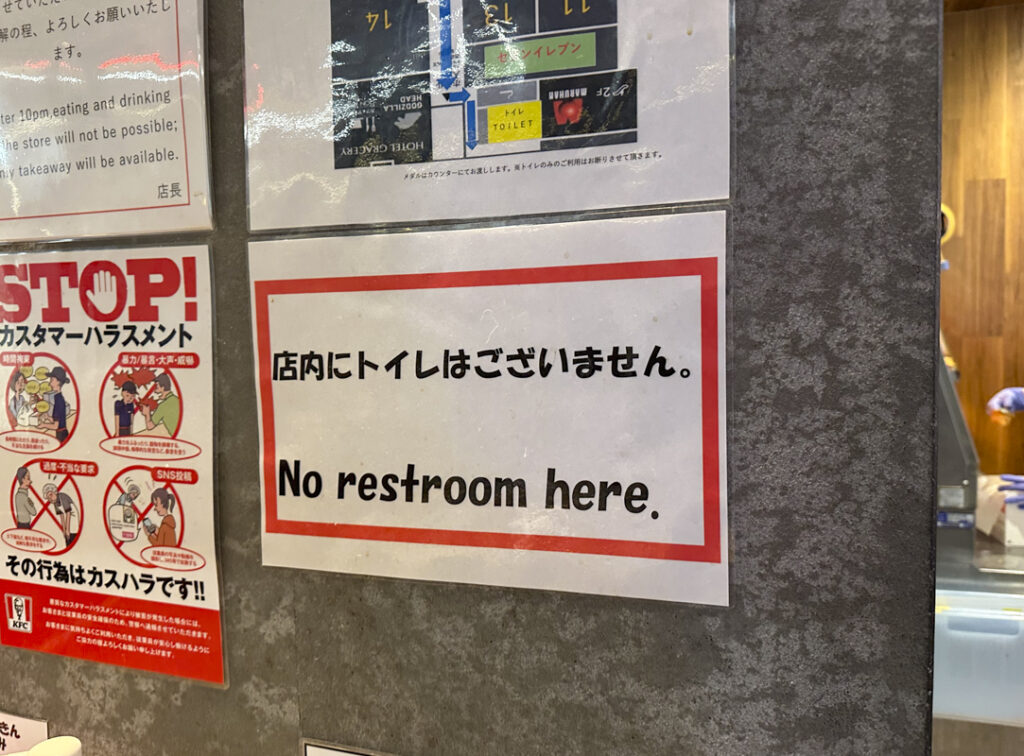 一部のコンビニでは、上写真のように「トイレはございません」「トイレ使用不可」と記載されている店舗もあるため、確認が必要です。