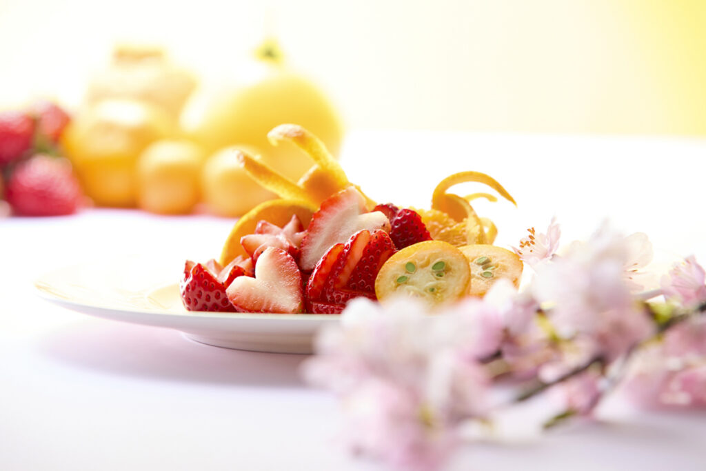 2026年3月から開催するタカノフルーツティアラ 苺と柑橘~春、果実、香る~では、柑橘や苺を中心としたカットフルーツ食べ放題とアフタヌーンティーセットを提供。