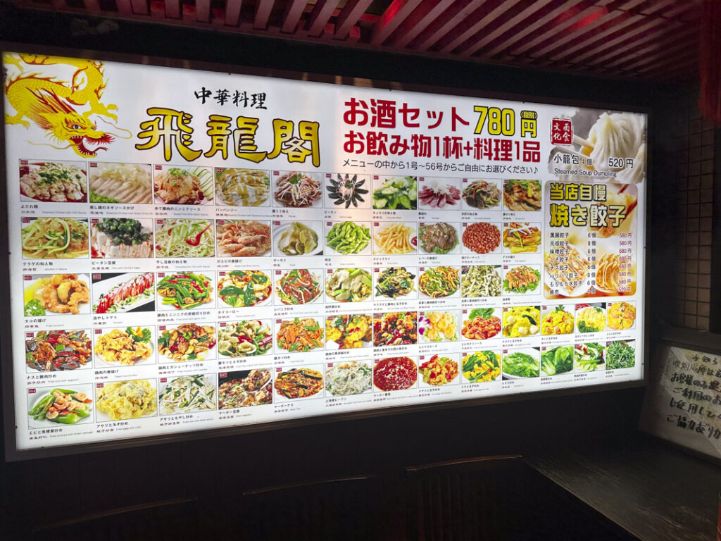 『餃子の市 飛龍閣』のリーズナブルな本格中華メニュー