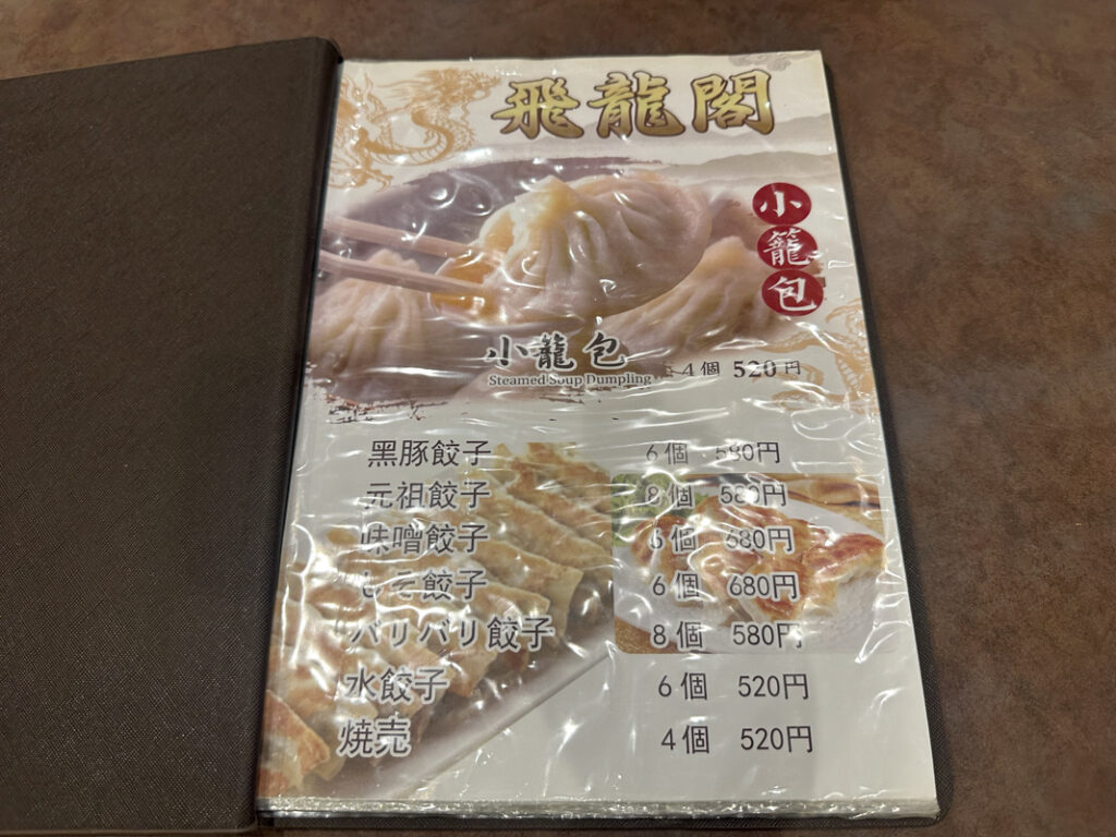 そして今回『餃子の市 飛龍閣』で頼んだメニューがこちらです。