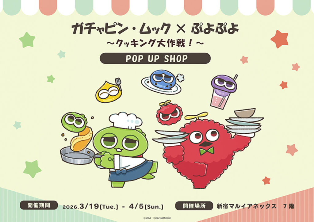 【新宿マルイアネックス】『ガチャピン・ムック×ぷよぷよ POP UP SHOP』が3月19日より開催!