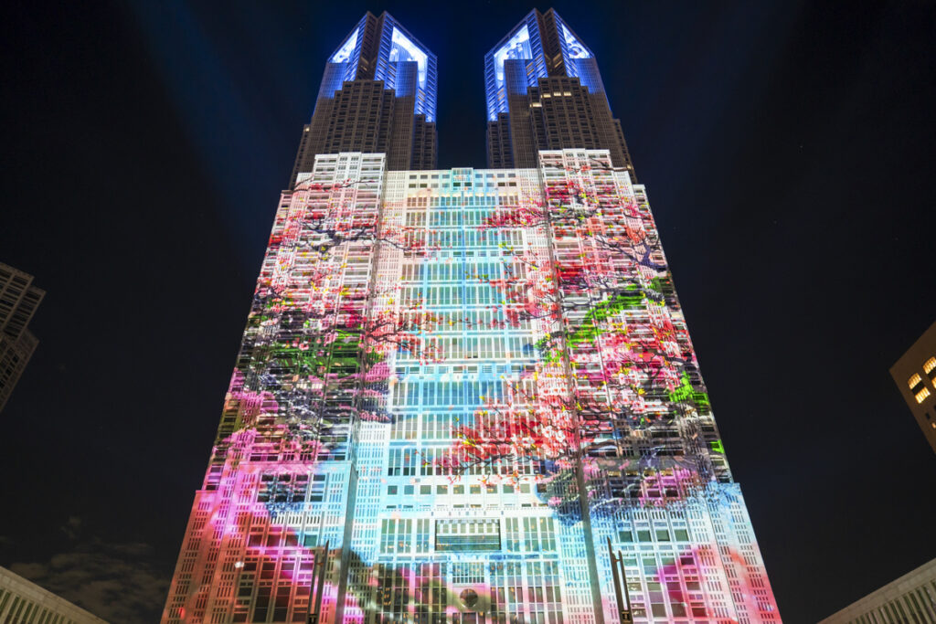 『TOKYO Night & Light』は、東京の夜を彩る新たな観光資源を作るため、東京のランドマークの一つである都庁第一本庁舎をキャンバスに、光と音で多彩なアートを表現するプロジェクションマッピング。