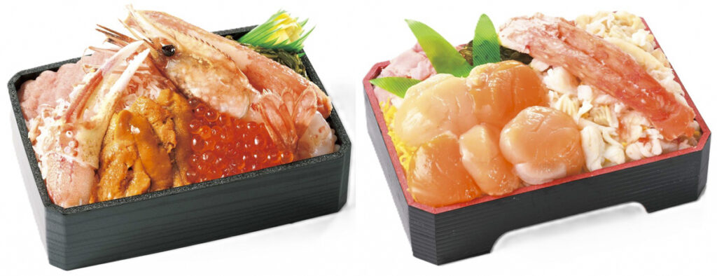 ■「食堂海のや」たらば蟹づくしとほたて貝柱の豪華ざんまい弁当 1折 3,450円(税込)
